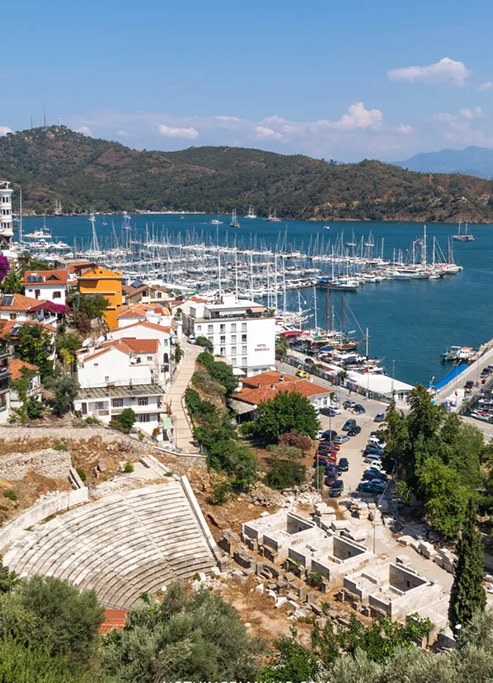 Fethiye is a natural harbor city in the western Mediterranean. It’s a very popular holiday center with its magnificent natural beauty and ancient Lycian towns. Oludeniz considered the most beautiful beach in Turkey is nearby, and it is a popular place to start a blue voyage gulet yacht cruise.