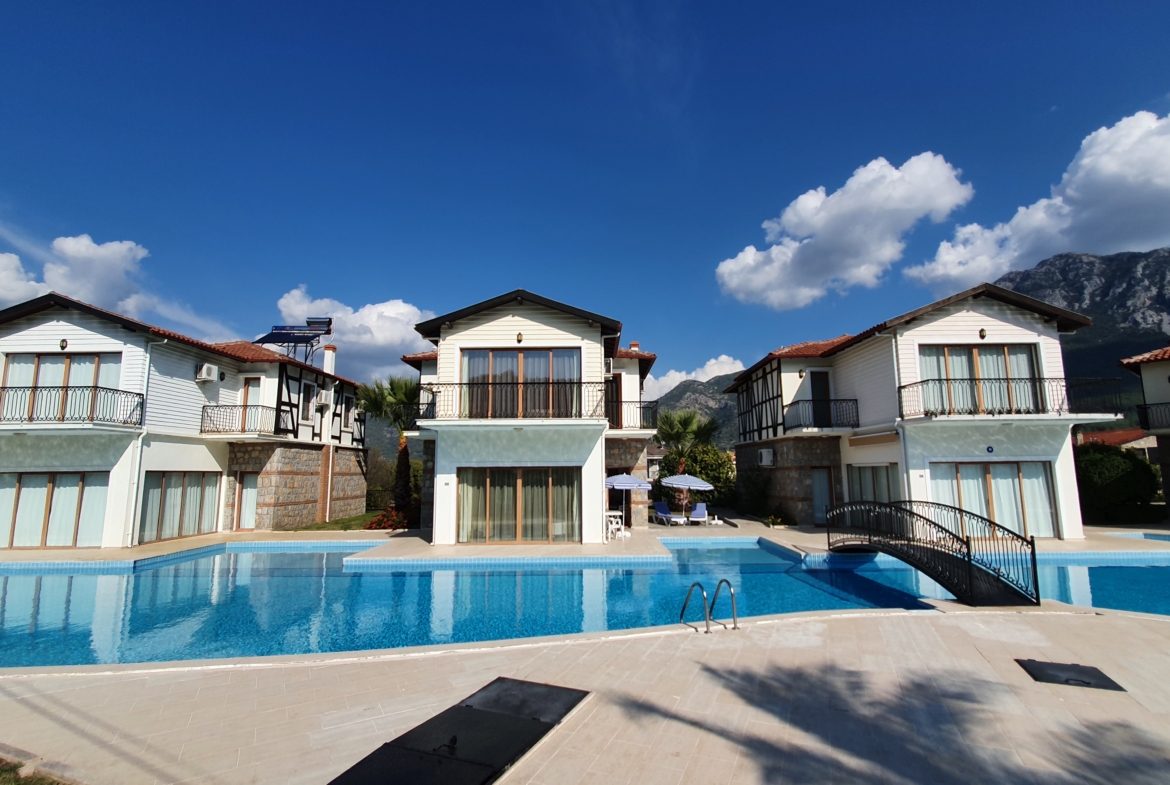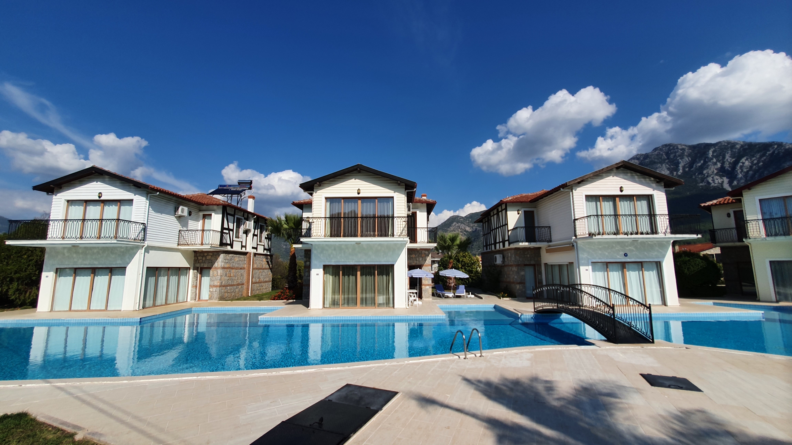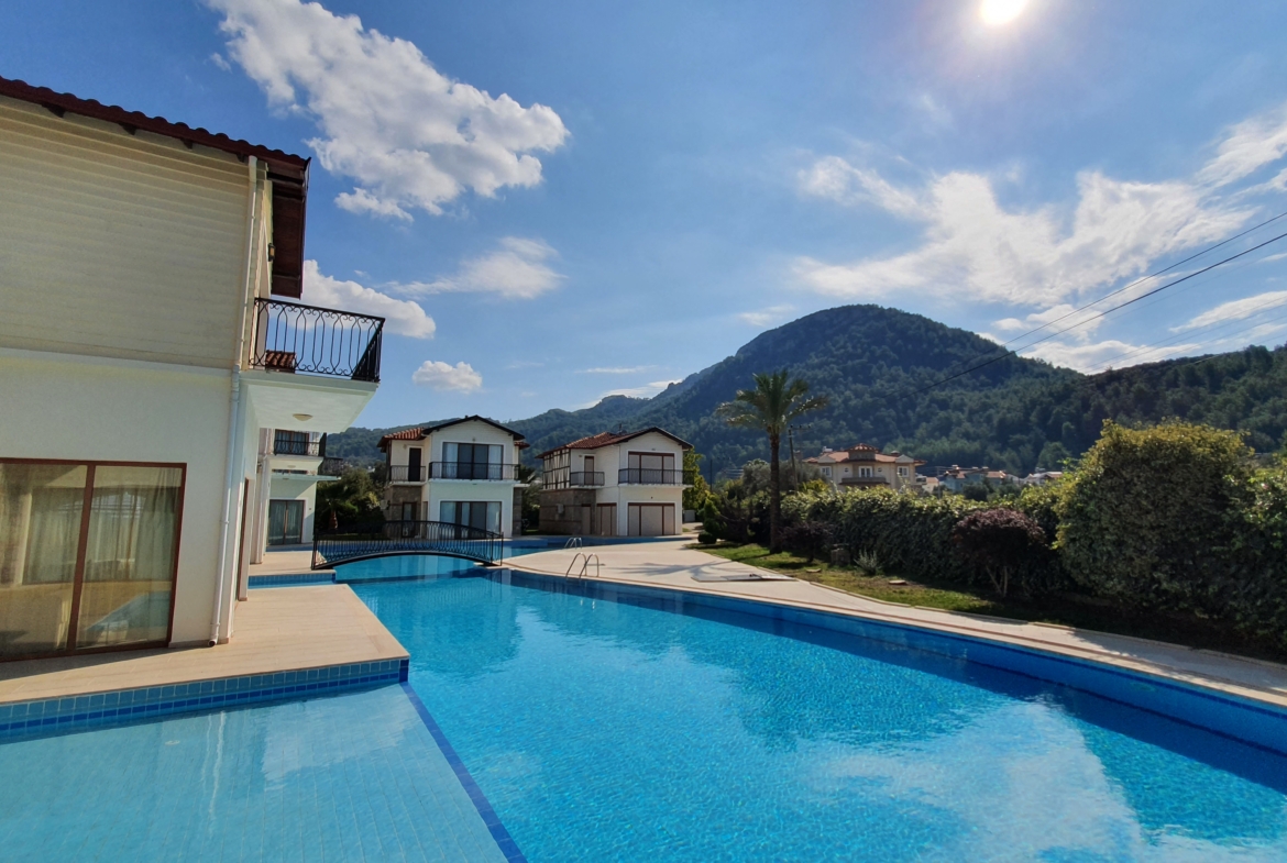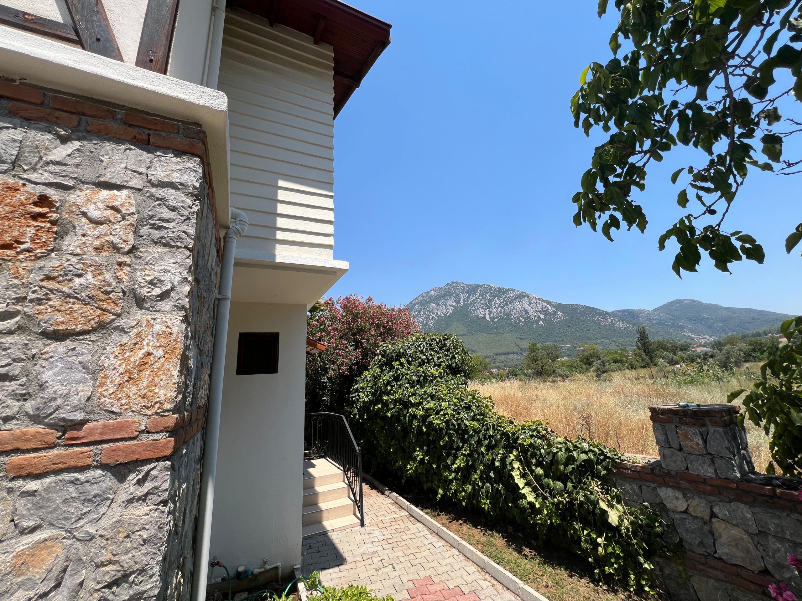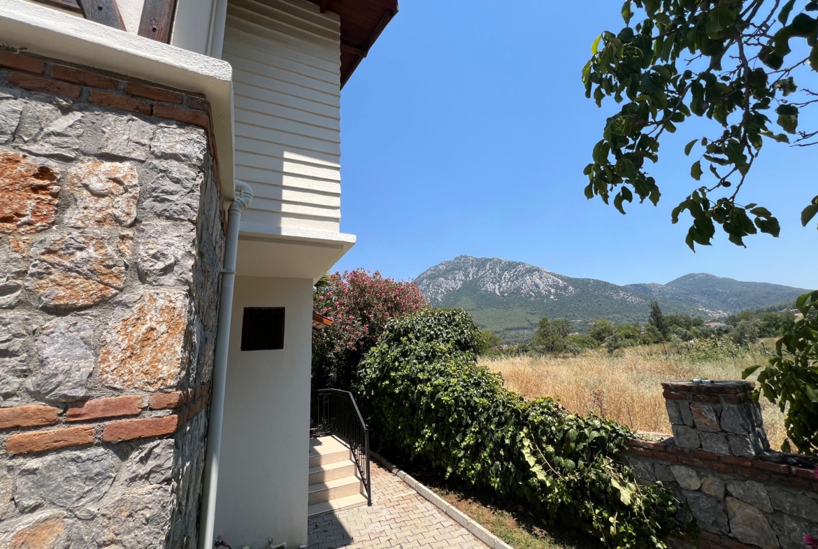 Set against a stunning mountain backdrop in the peaceful village of Yeşil Üzümlü, Fethiye,