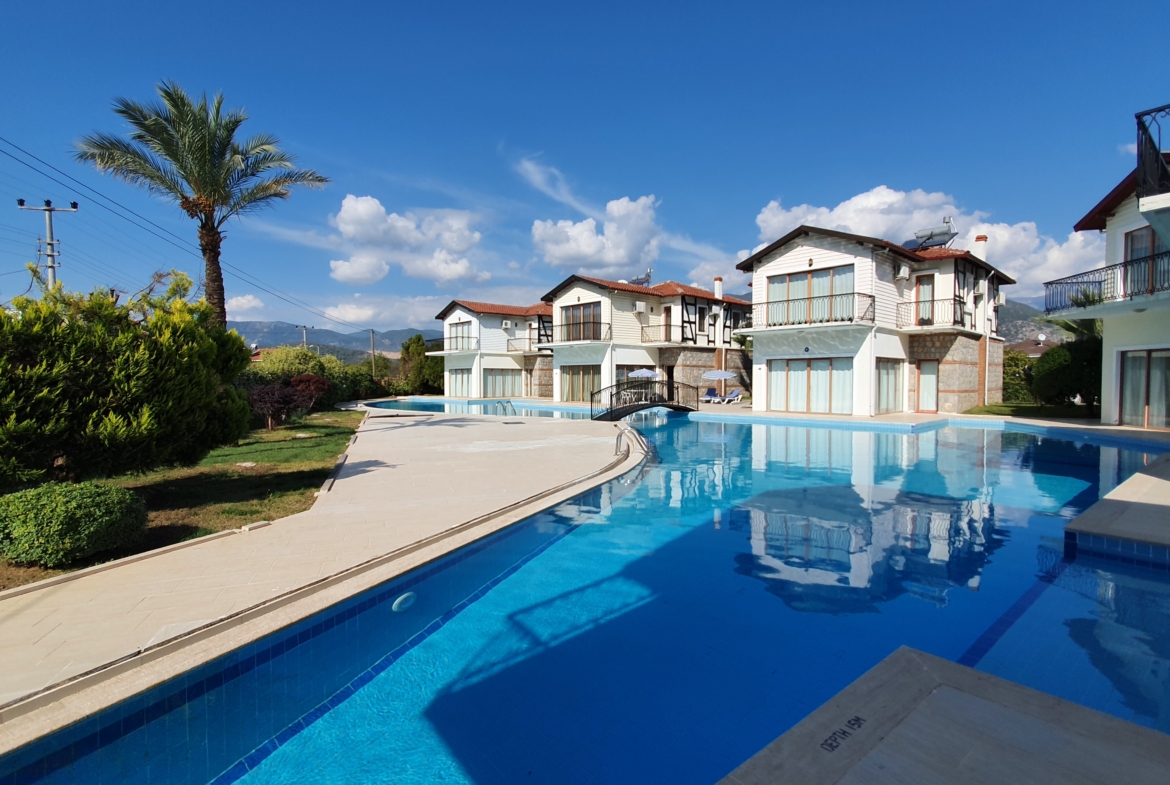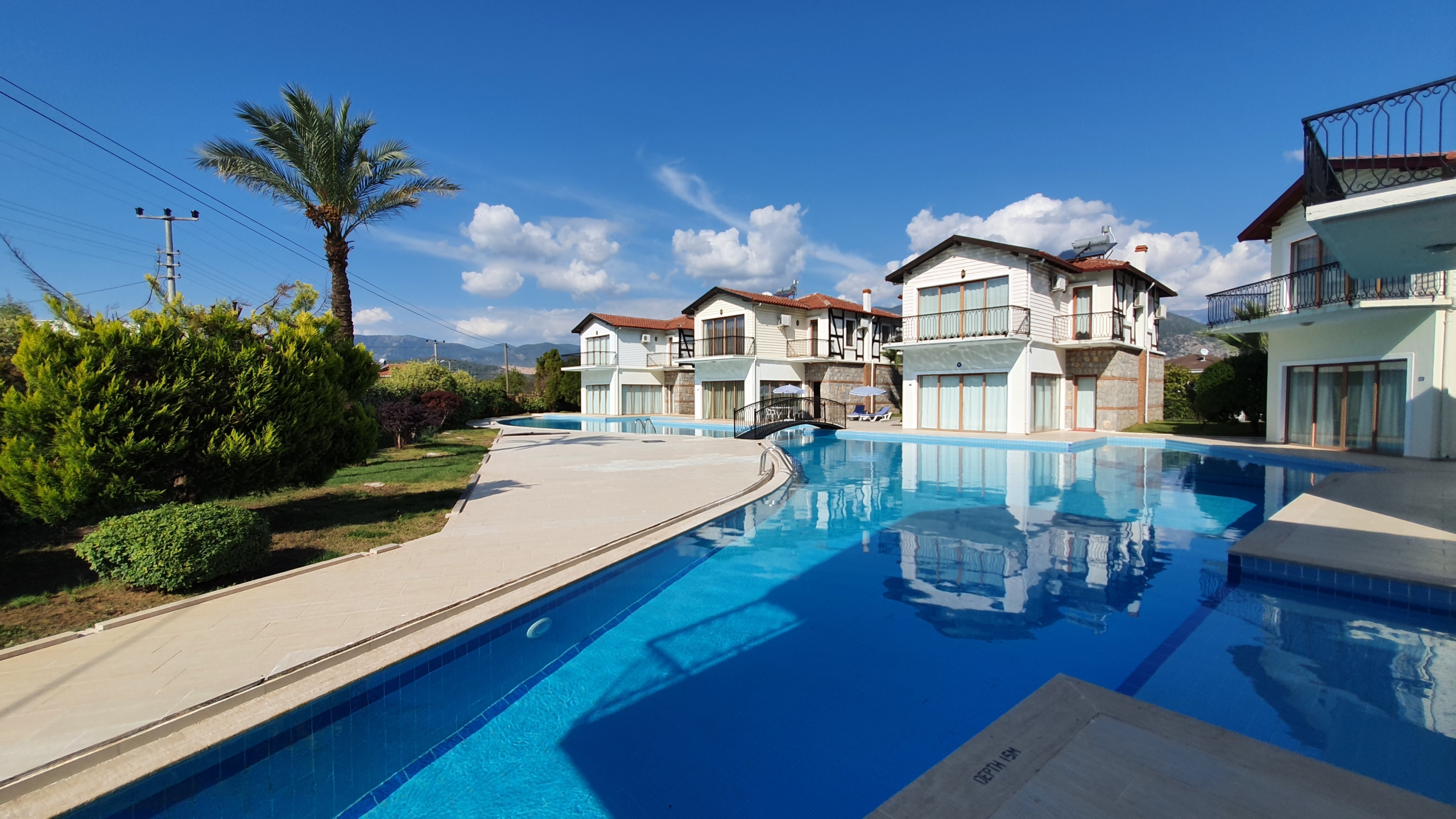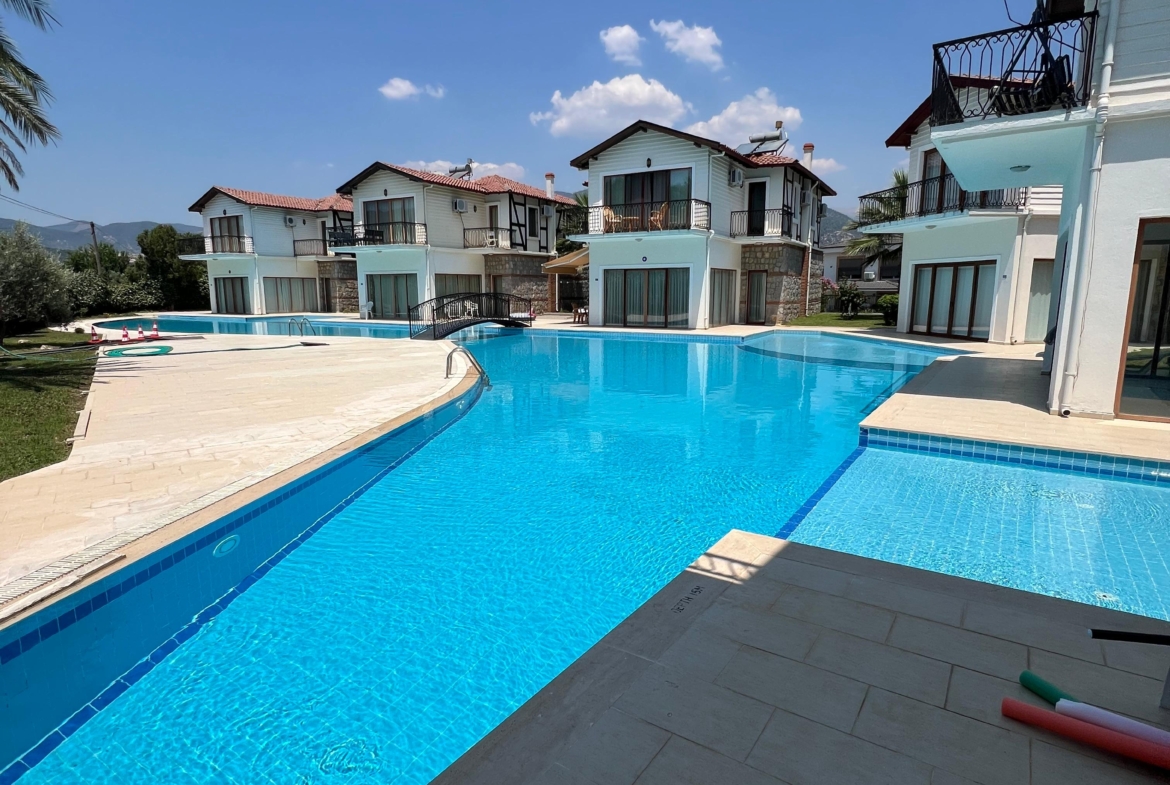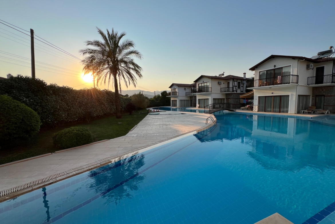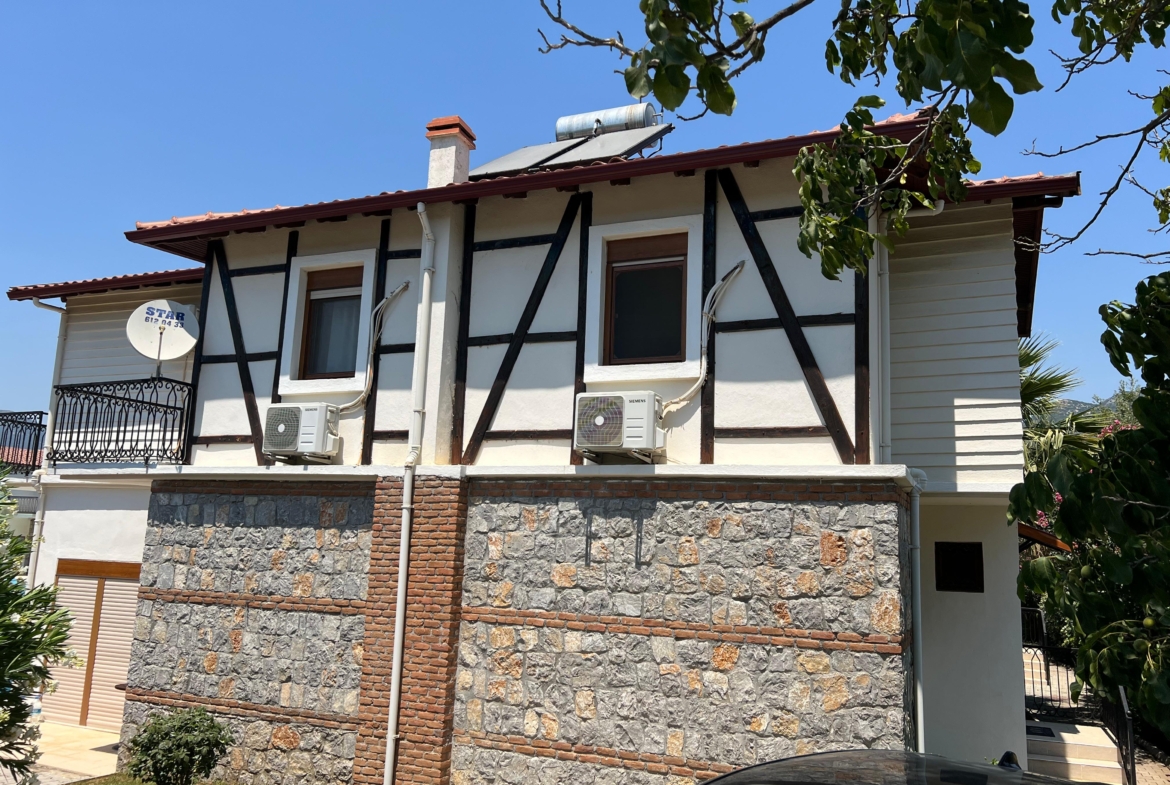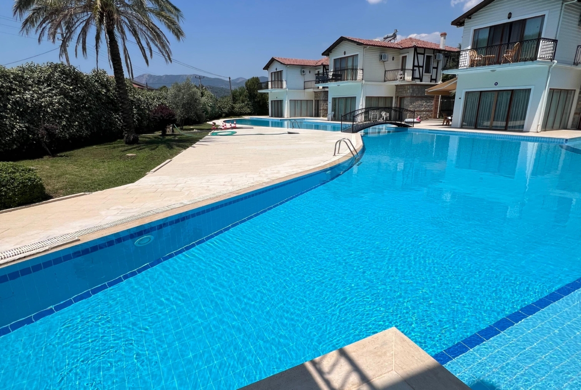 This three-bedroom detached duplex villa offers a perfect mix of traditional Aegean character and modern convenience. Part of an exclusive boutique site of only six villas, this property enjoys access to what is widely considered the largest communal swimming pool in Üzümlü.