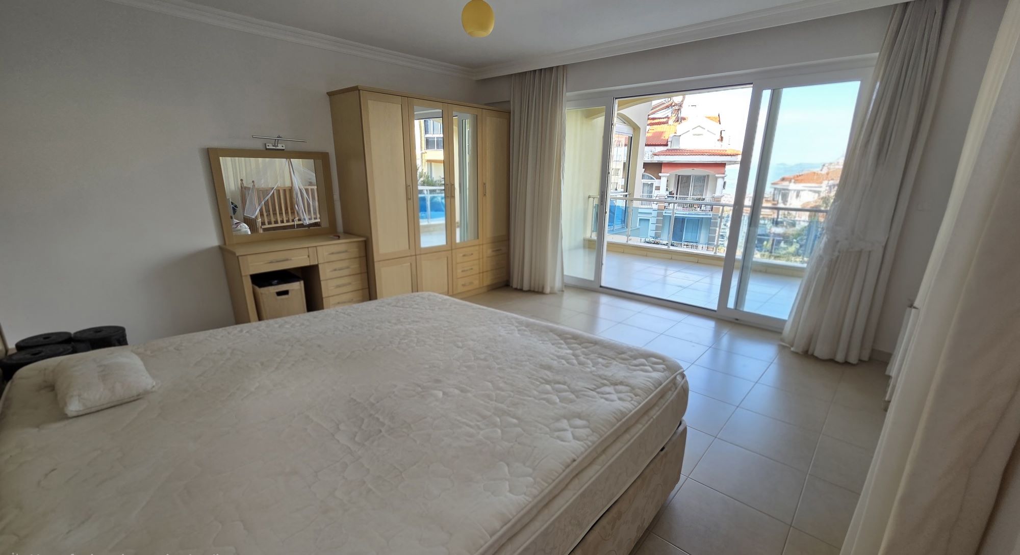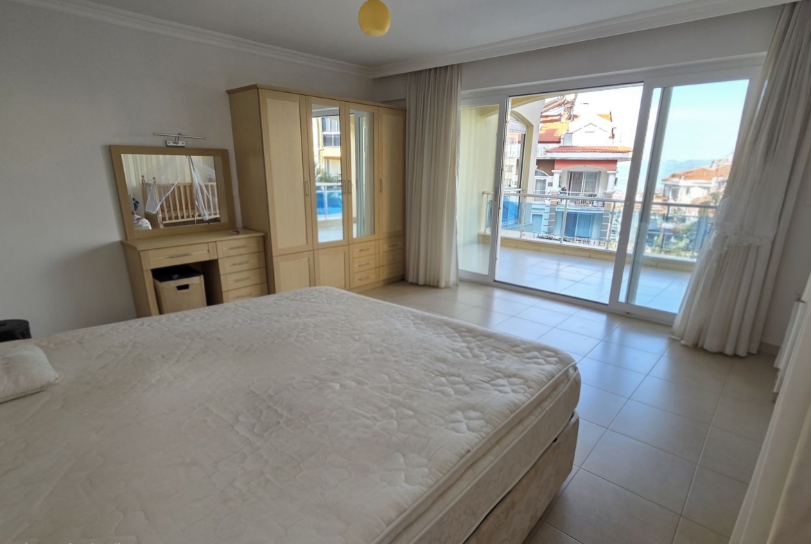 Master View: The primary bedroom enjoys its own large private balcony, offering a serene vantage point over Fethiye.