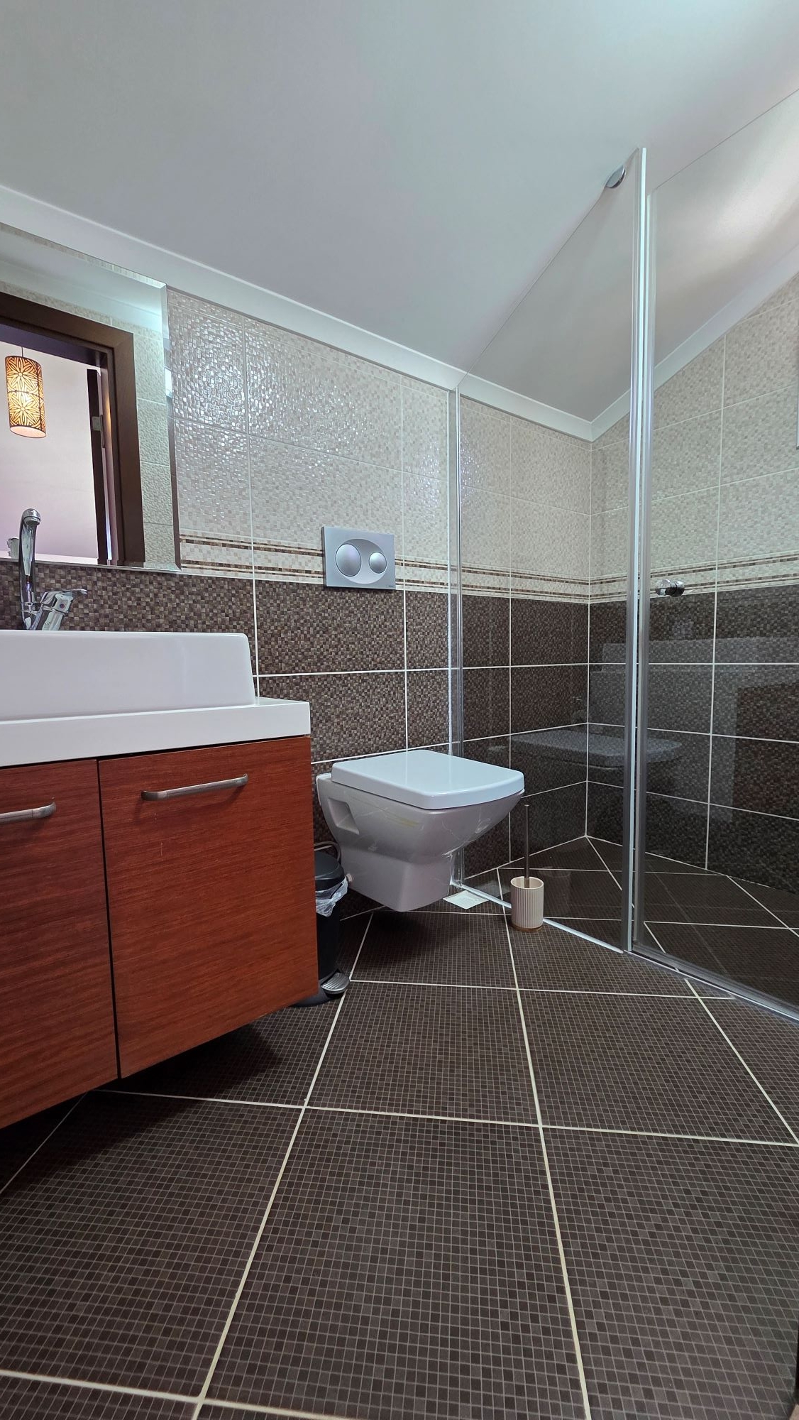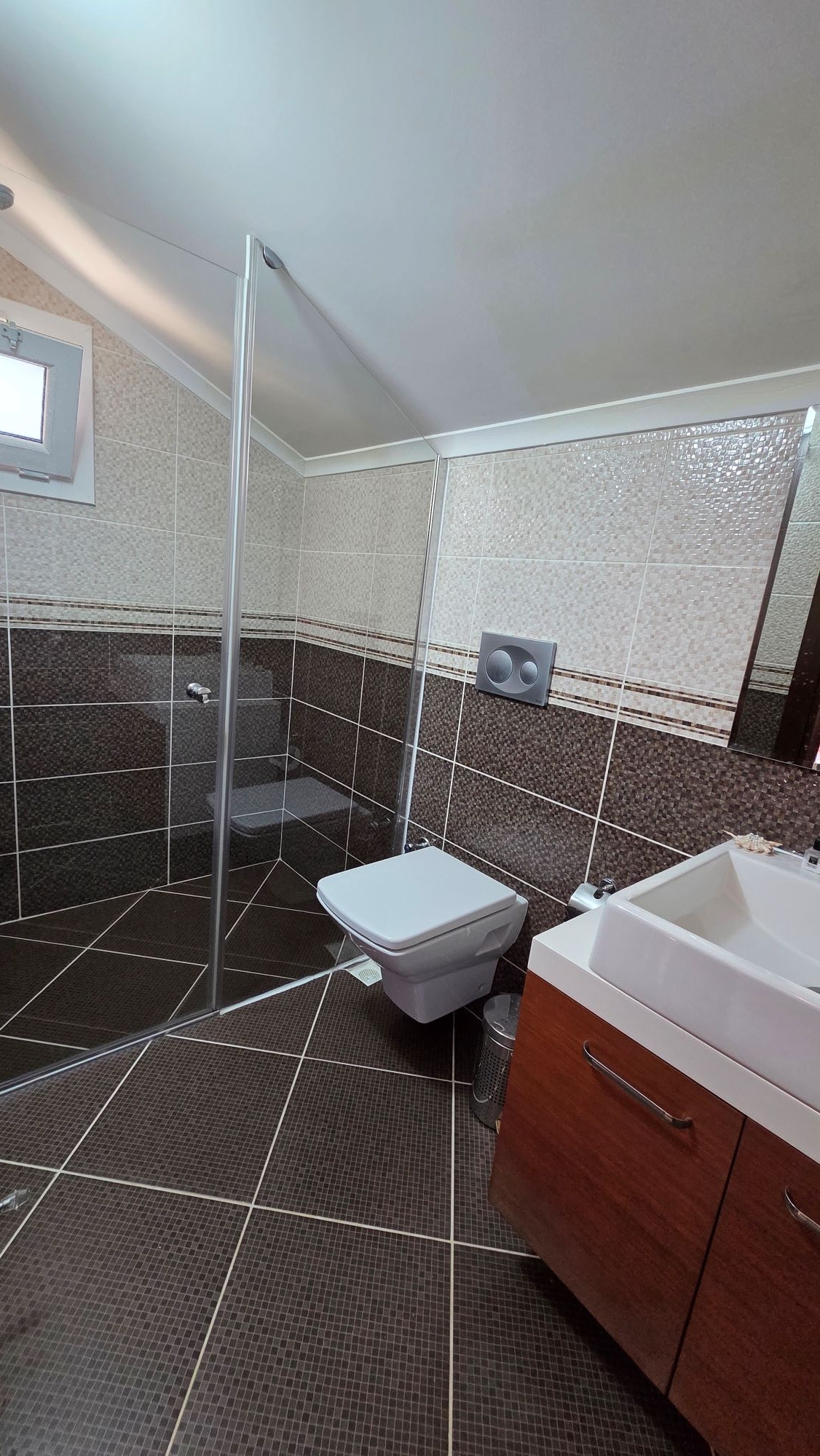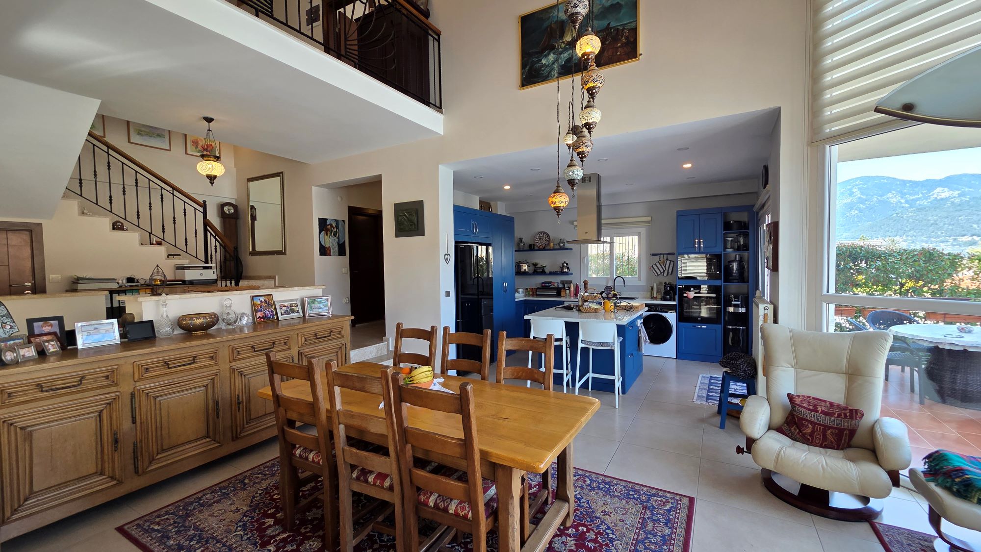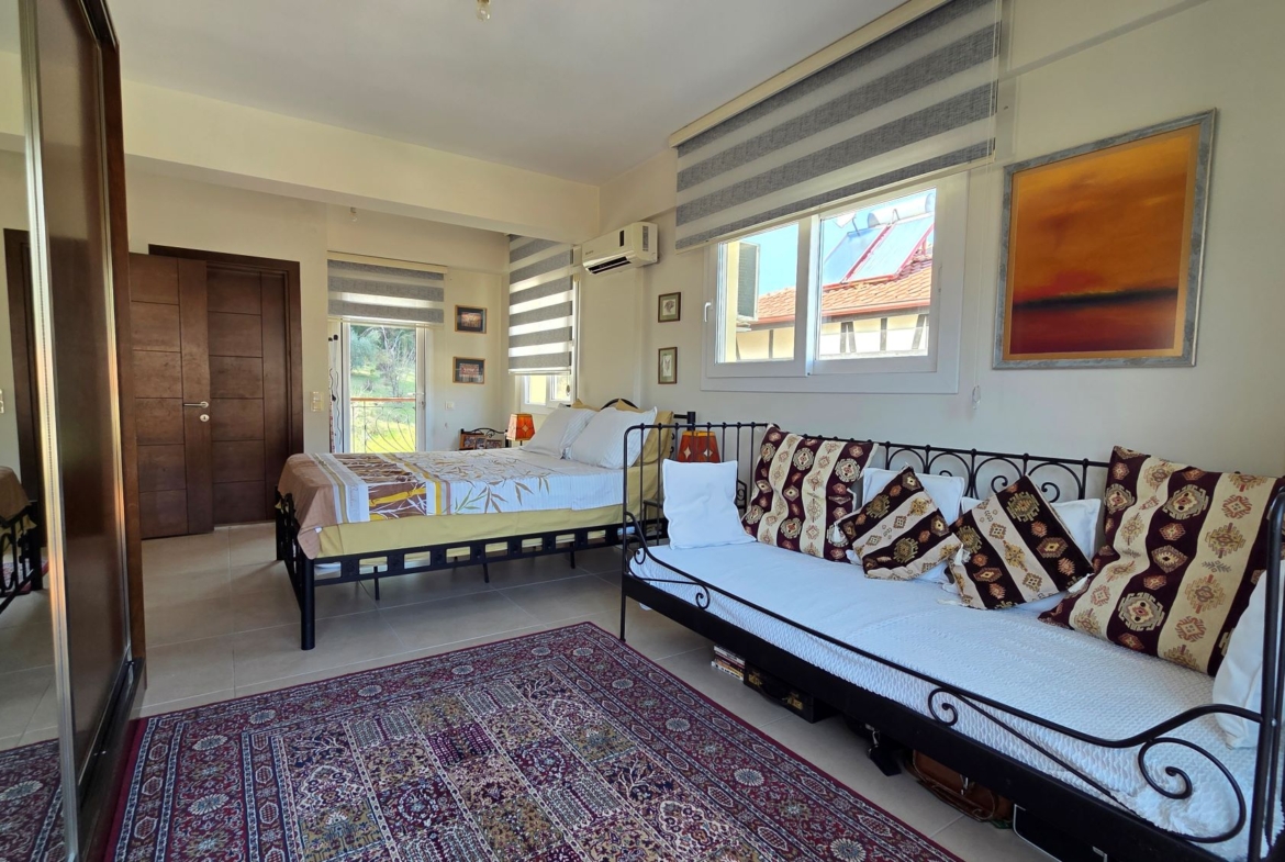 This exceptional 4-bedroom detached villa is situated on a 600 m² corner plot in the picturesque village of Yeşil Üzümlü. Bordering a lush green belt, the property offers a unique sense of privacy and tranquility while boasting breathtaking panoramic views of the surrounding mountains and nature.
